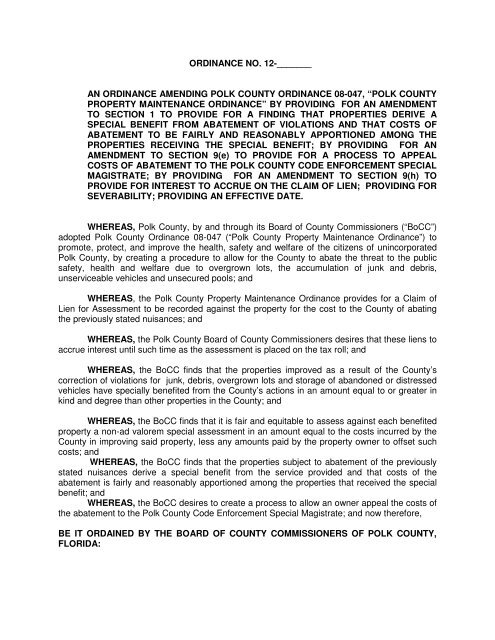 Proposed Ordinance Amending The Polk County Property
